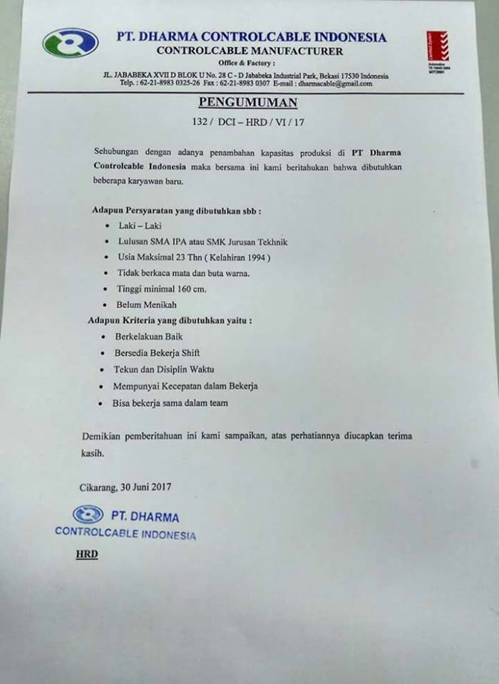 Pt dharma poliplast, manufaktur plastik injeksi yang berdomisili di lippo cikarang bekasi. Logistic section head · 2. Kegiatan halal bihalal juga dilaksanakan secara serentak hari pertama diawal jam kerja di pt. Dibawah ini telah kami sajikan informasi lowongan kerja lulusan sma smk d3 s1 s2. Yayasan bakti dharma polimetal (ybdp) :